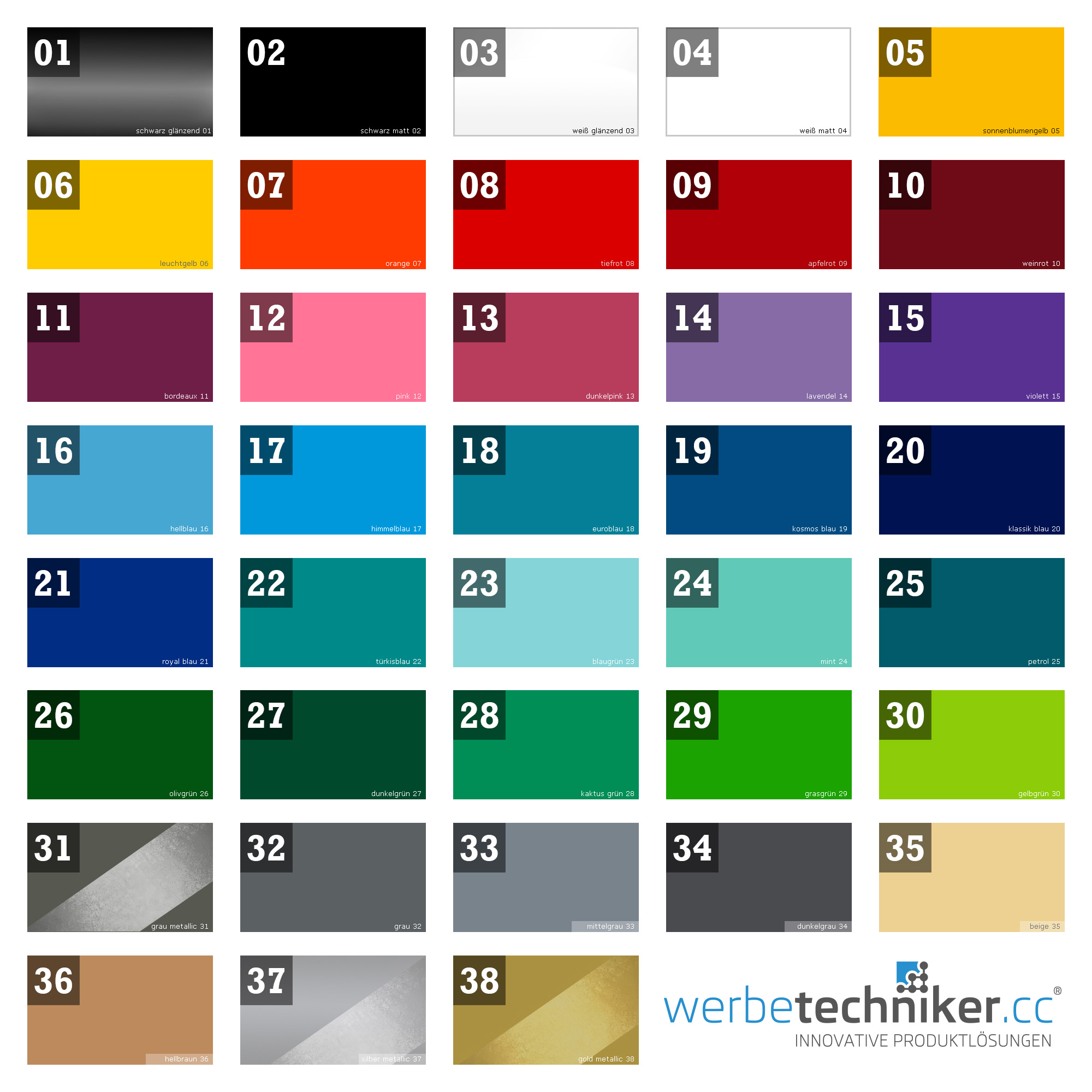 Bitte beachten Sie das es zu Farbabweichungen zwischen Monitor und Folien kommen kann.